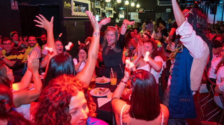 Organizamos las despedidas con cenas más divertidas y diferentes de Madrid. Juegos, concursos, coreografías, karaoke, sorpresas y momentos únicos te esperan cada noche en nuestro local. Además, olvídate de los traslados e interrupciones, porque nos quedamos de fiesta HASTA LAS 6 DE LA MADRUGADA SIN DESPLAZAMIENTOS.